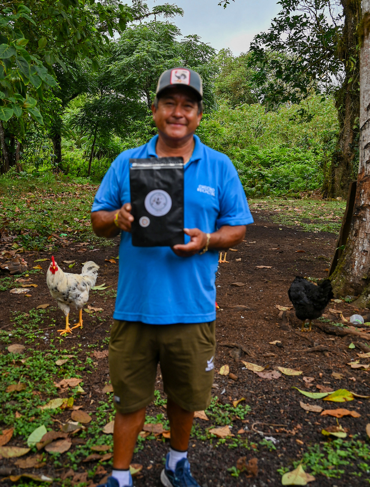 At 500 hectares, Los Cuatro Hernános (The Four Brothers) Farm is the largest coffee farm on Isabela Island. Don Flavio Gomez grew coffee on Isabela Island about 45 years ago, when Isabela was known for its coffee production. However, due to conservation priorities and lack of economic viability for coffee farming, the industry declined until recent times, when a back-to-the-land movement has gotten underway on Isabela. Today, the farm, managed by Don Gomes, the son, has approximately one to one and a half hectares of coffee, mostly the Típica variety (local coffee). This is not a recently planted plantation in large rows, but rather a coffee field that has been renewed over time through pruning and natural regrowth, keeping the strongest plants that continue to sprout and grow. In addition, Don Flavio has also planted new coffee plants recently—around 160 young plants—as part of the farm’s renewal process.