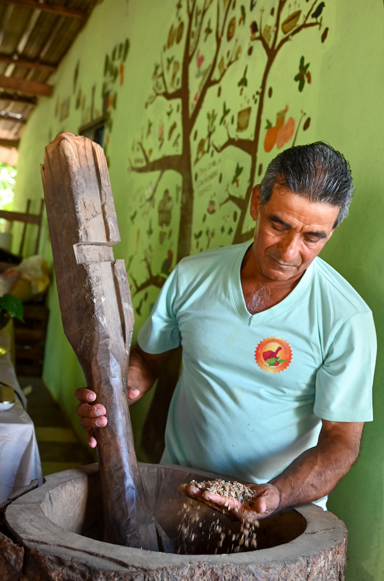 One of IOI’s most recent initiatives is to support the reintroduction of coffee as a sustainable crop. One coffee farm grew into seven with the efforts of Walter Osorio, whose family came to Isabela to grow coffee many years ago. Don Osorio, who now owns the farm, decided to try more than one variety of coffee by experimenting with growing different varieties in the favorable micro-climate of San Cristobal. The 300-meter altitude and frequent cloud cover provide conditions favorable for coffee. Seeing Don Osorio at work on any day to maintain his coffee plantation without machinery of any sort demonstrates the hard work and dedication needed to grow a quality coffee. After being picked, his beans can take up to three months to dry because of the region’s climate, and once ready for processing, the beans go into a very large, wooden mortar and pestle, which Don Osorio uses to remove the outer layer of the bean. He then puts an electric fan in front of the beans, and he drops them into the mortar to separate the beans, now ready for hand roasting, which takes about fifteen, very closely supervised minutes to keep the beans from burning. Finally, he puts the roasted beans into a coffee grinder, which he turns by hand. The scent of the coffee grinds is far-reaching, and visitors eagerly await the taste of freshly brewed coffee from Finca de Naranjos. IOI has provided workshops on coffee growing, and all of Don Osorio’s growing practices are strictly organic.