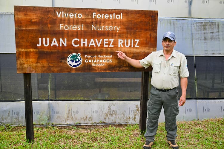 According to the park ranger managing the plant nursery, Cléver Jiménez, “For the nursery work, we manage soil and earth from the beginning. We tested soil until we identified that a certain type of soil works especially well for Scalesia.” Don Jiménez went on to explain that the soil for this project is organic and natural without chemical additives. The heat generated by the plastic encompassing the nursery helps to sterilize the soil and, as a result, there will be fewer weeds. Scalesia needs four to five months of healthy growth before it is ready for reforestation, but once planted, Scalesia trees, which produce daisy-like flowers, will provide habitats for endemic bird species, insects, and other flora. Because the Scalesia trees play an important role in the island’s water cycle, their dense vegetation helps maintain soil moisture levels, and at higher levels, Scalesia is responsible for fog cover, an important part of the micro-climate.